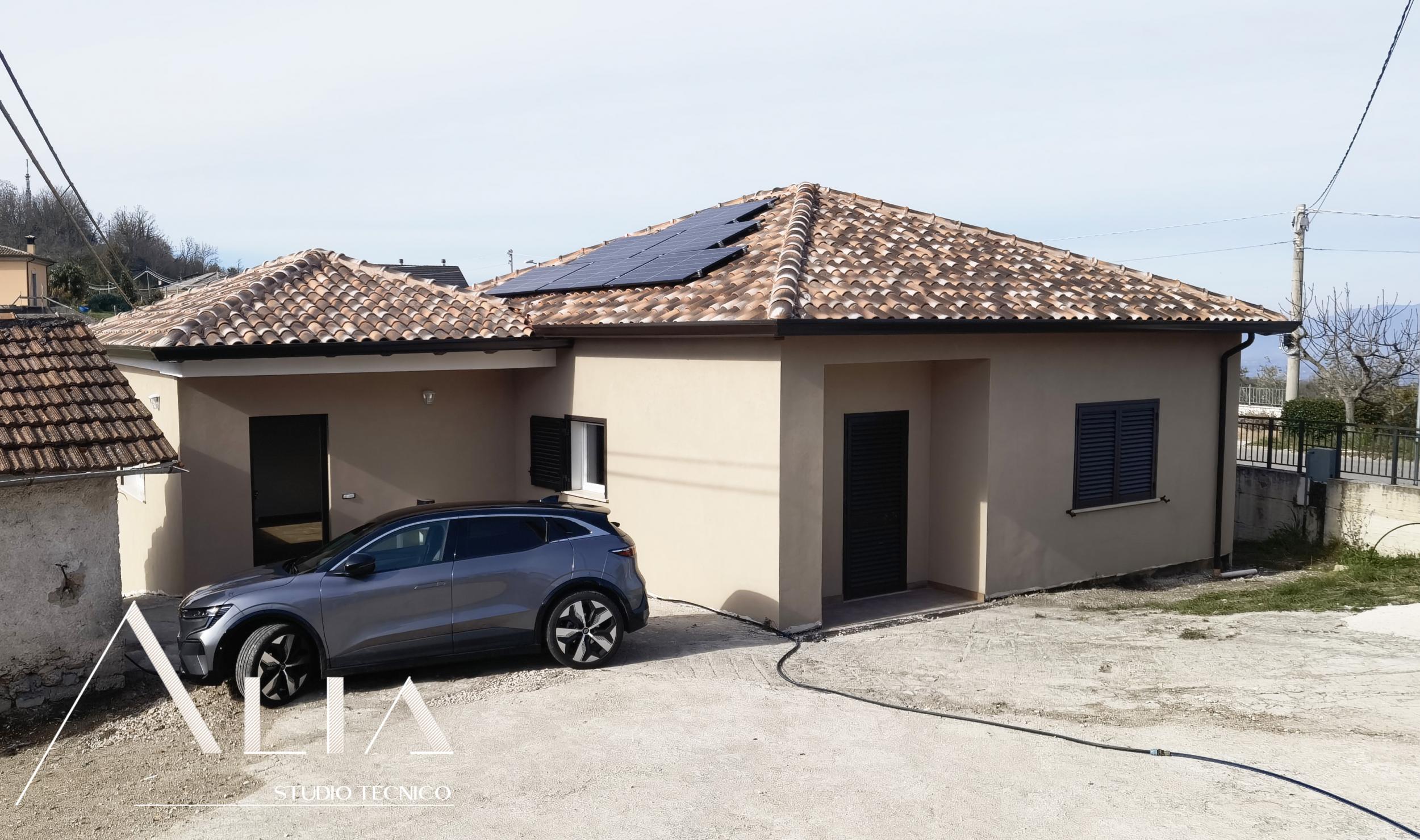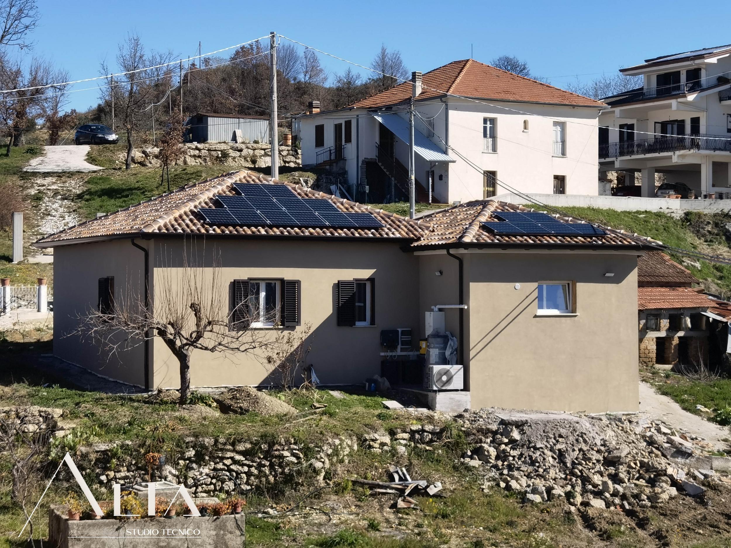 - istallazione di un impianto fotovoltaico per la produzione autonoma di corrente elettrica, che va ad abbattere i consumi dovuti alla pompa di calore e anche alla colonnina di ricarica di autovetture elettriche, anch'essa installata con l'intervento;