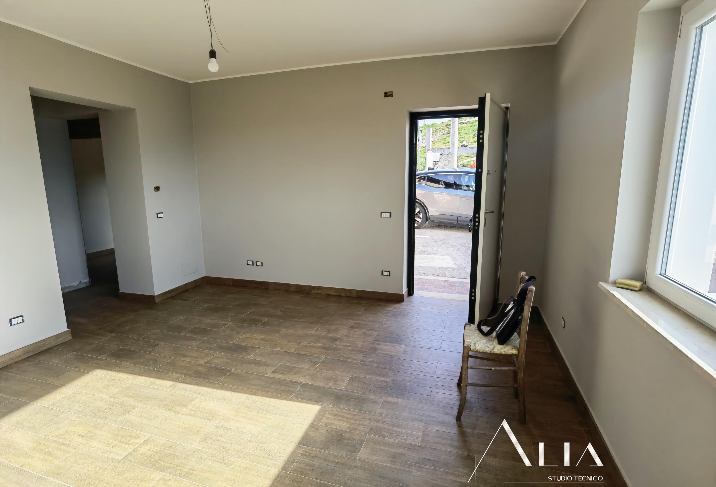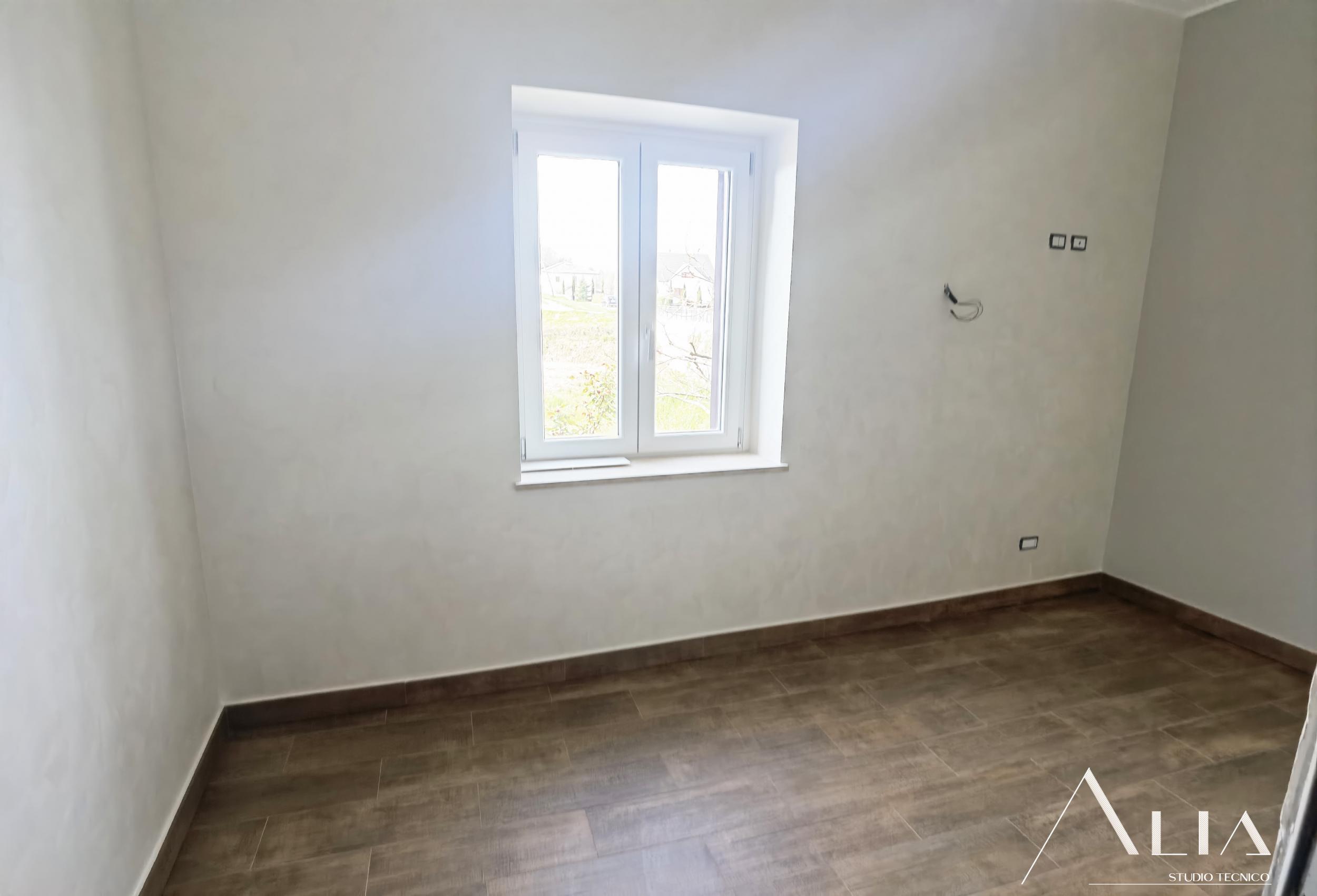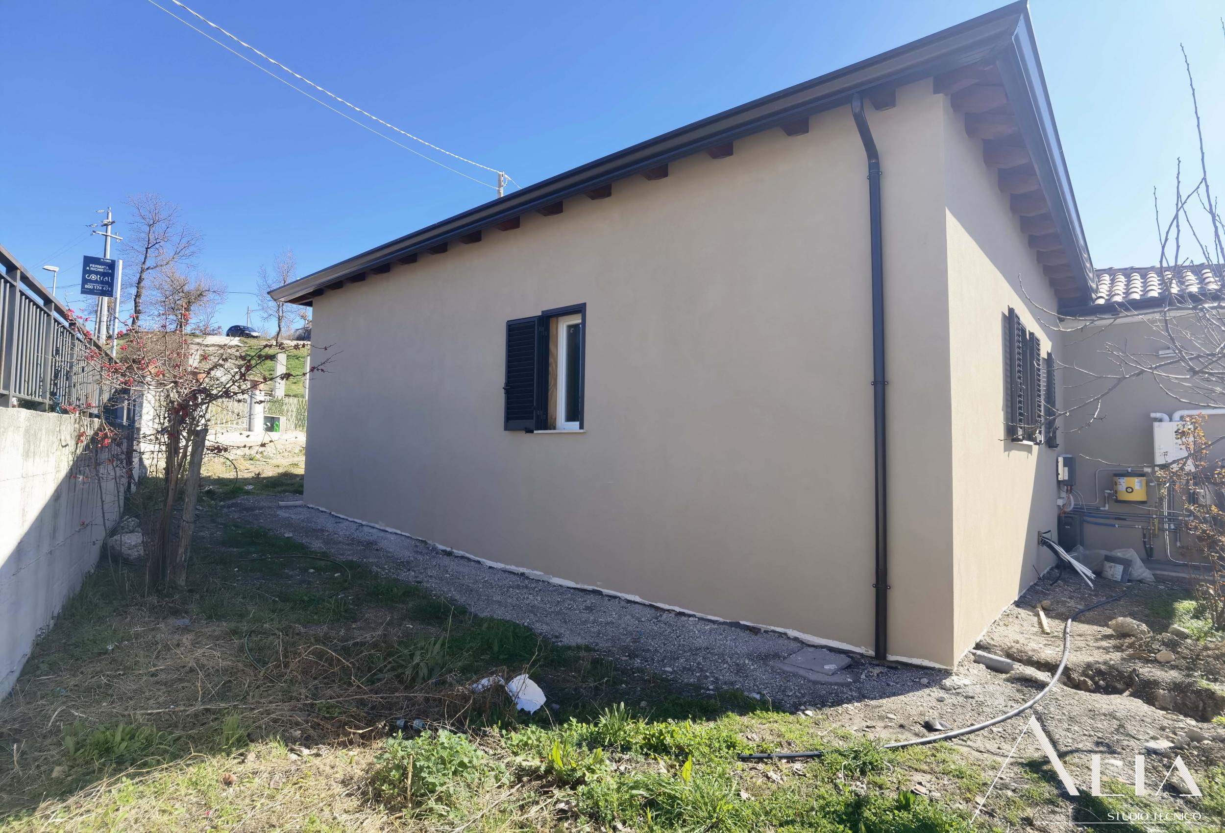 - l'isolamento termico totale dell'edificio tramite l'istallazione di un cappotto termico sulle pareti perimetrali, la coibentazione del nuovo tetto in legno e del nuovo pavimento controterra, quest'ultimo anche isolato tremite insermento di igloo;